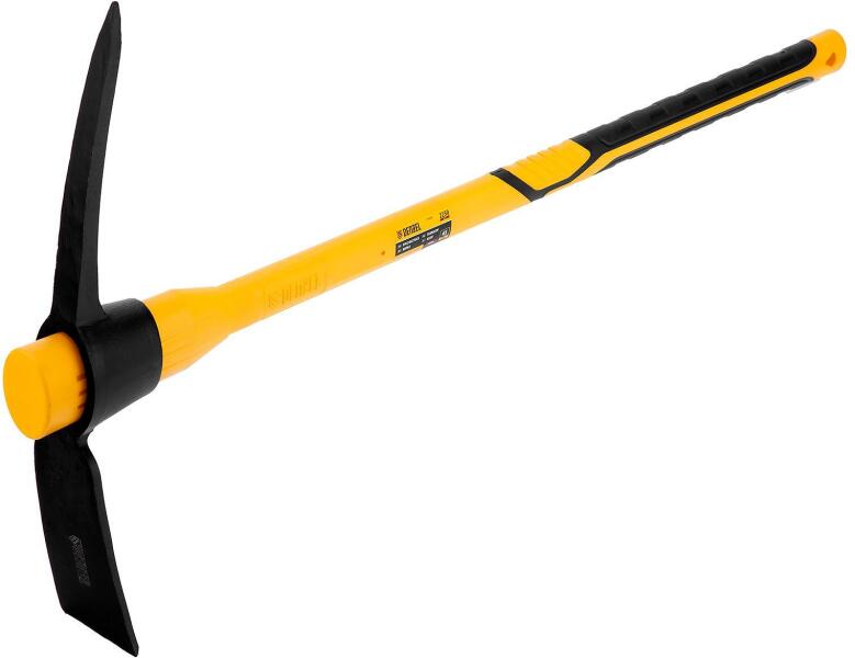 A Denzel csákány, 900mm , keskeny munkarésszel, 2250g fejjel és üvegszálas gumírozott fogantyúval, kövek megmunkálására, sziklás, száraz földes és agyagos talaj lazítására készült.